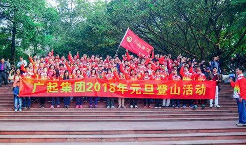 2018年1月1日新年元旦,公司工会组织全体员工开展了一年一度的登山活动。全体员工着装整齐,精神抖擞,迈着坚定的步伐,高喊“2018、继续进发”的口号向风景秀丽的白云山进发。展示了广起员工在新的一年里,不畏艰难险阻,向着新的目标奋勇前进和勇创佳绩的决心。