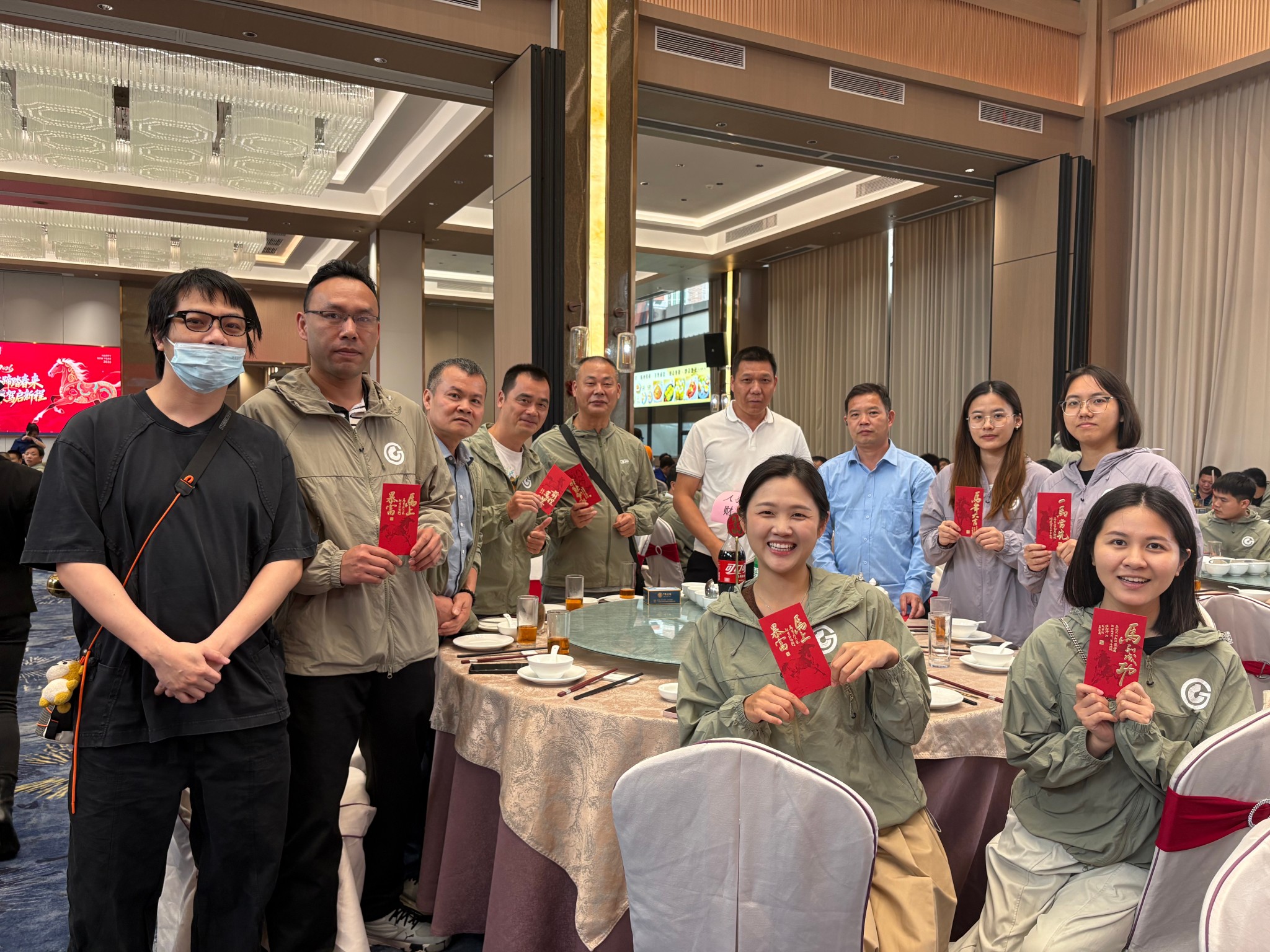 团拜聚餐在新一届高管团队的祝酒中开启,大家举杯共庆、畅叙情谊。席间,集团向每位属马的员工赠送了精美的马年纪念品,寄寓马年吉祥、事业腾飞的美好愿景。
