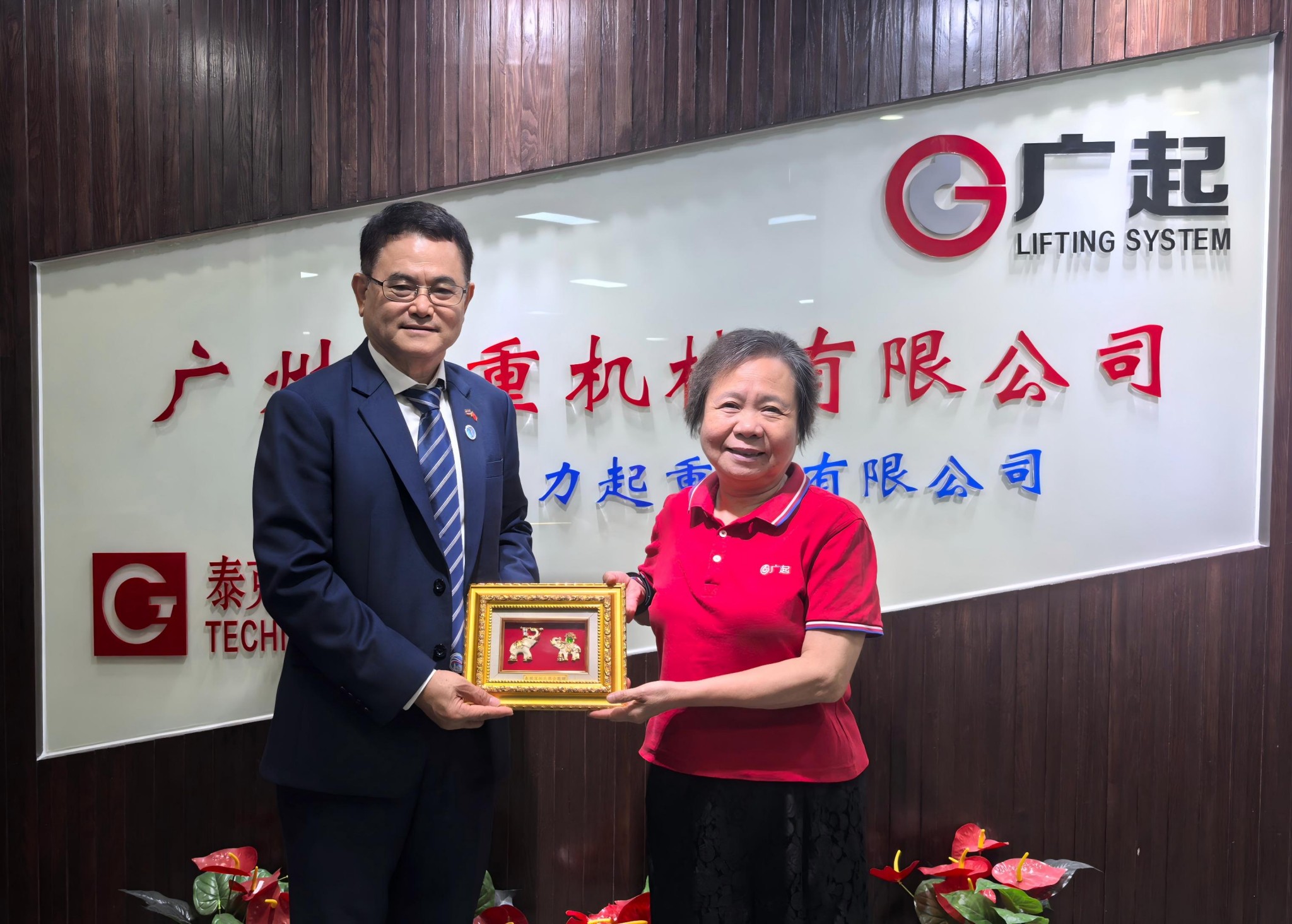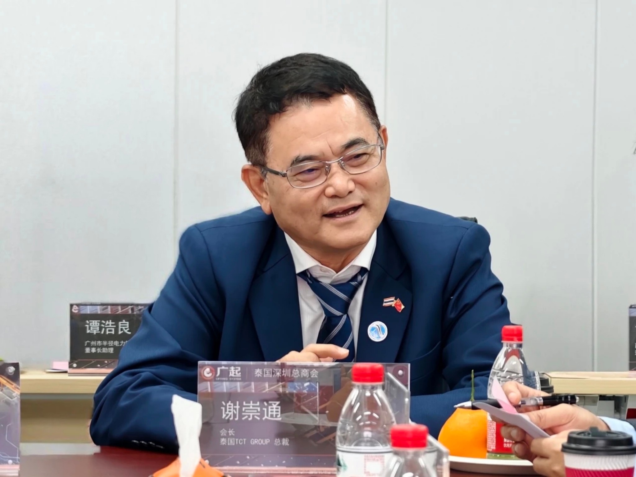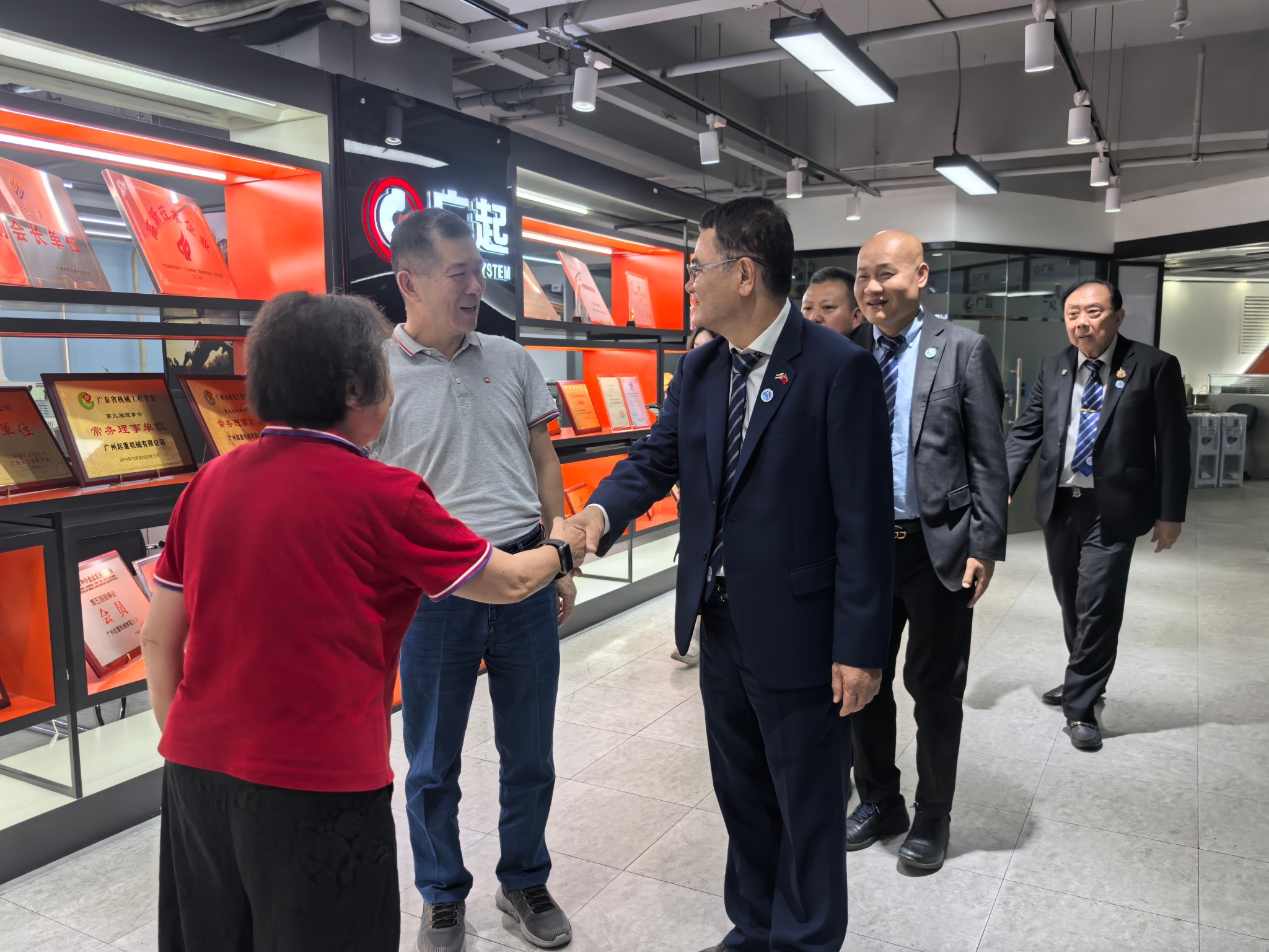 4月10日,泰国深圳总商会谢崇通会长一行在广州“三会”王泽新会长等人的陪同下,莅临广起集团指导交流。广起集团董事长黄海珊热情接待了来宾,三方围绕中泰企业合作、智能化转型及泰国投资机遇等议题展开深入座谈。