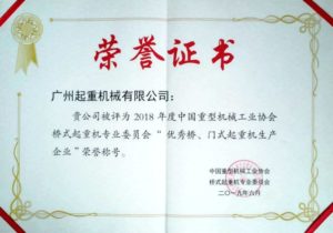 会议对协会的14家2018年度“优秀桥、门式起重机生产企业” ,19家2018年度“优秀起重机配套件供应商” , 10位2017~2018年度“先进协会工作者” 进行了表彰。我司荣获2018年度“优秀桥、门式起重机生产企业”称号。