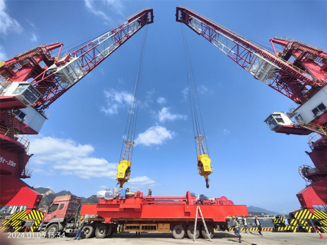 我司承接的广州文船重工有限公司400T*150m门式起重机项目上下小车及维修吊完成厂内制作,于2024年1月4日顺利完成装船发运。